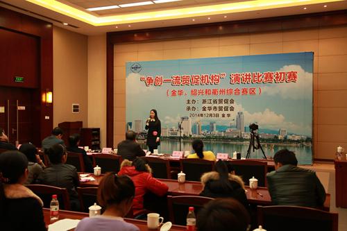??全省贸促系统?“争创一流贸促机构”论坛征文和演讲比赛金华赛区比赛于12月3日在金华市文化中心举行,来自绍兴、金华、衢州三地贸促机构15名选手参加比赛。省贸促会许勇副会长出席活动并讲话。